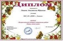 Лауреатом конкурса в номинации народный вокал стала Эмирханова Элина, дипломантом в эстрадном пении Юшкова Валерия. Поздравляем педагога, подготовившего учащихся - Миронову Наталью Станиславовну !