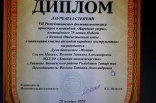 28 ноября в г. Казань прошел VII Республиканский фестиваль-конкурс оркестров и ансамблей "Народных иснтрументов", посвященный 75-летию Победы в Великой Отечественной войне. Приняли участие и стали лауреатами конкурса учащиеся ДШИ г. Лаишево: