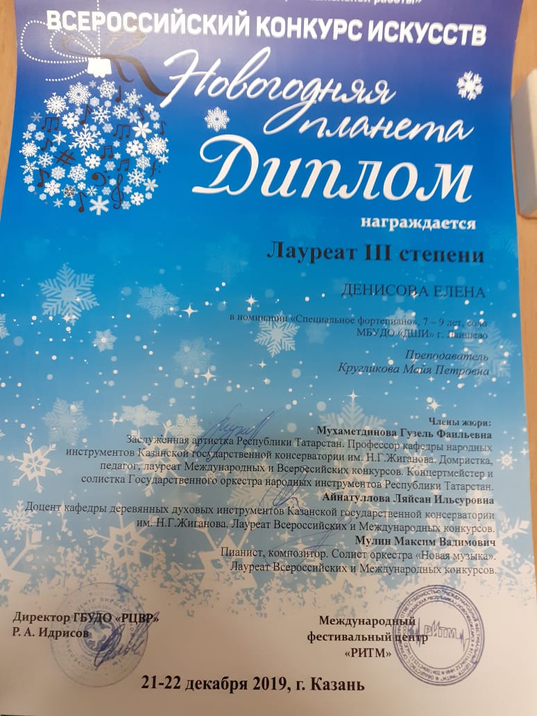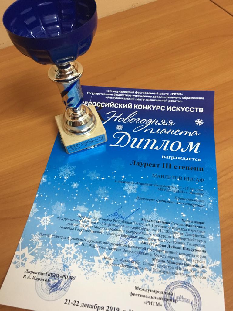 Мавлетов Инсаф Лауреат III степени "Новогодняя планета"