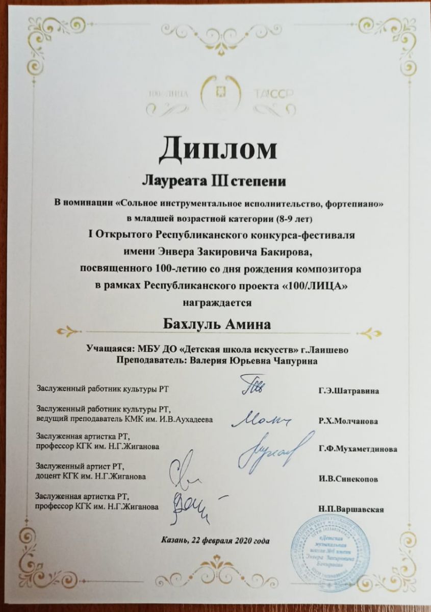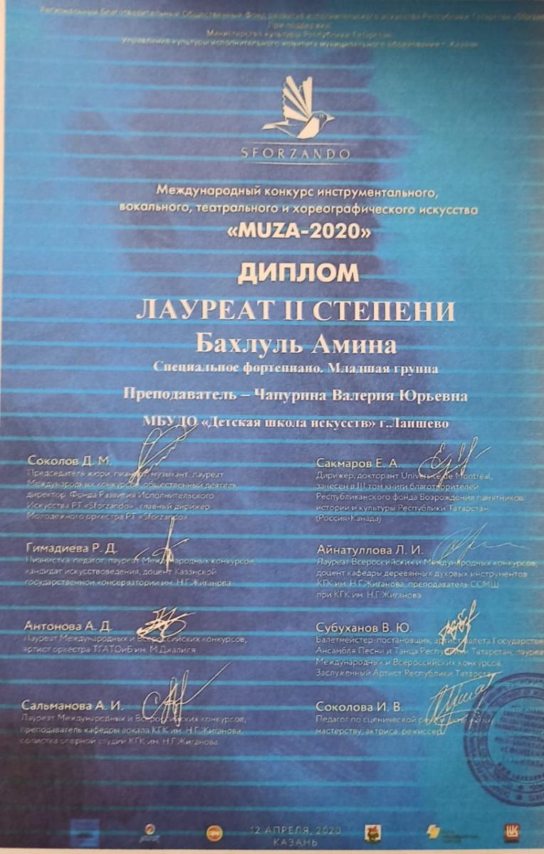 Бахлуль Амина Лауреат II степени "MUZA-2020"