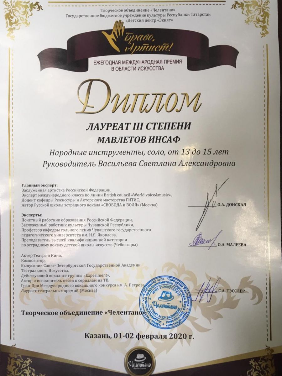 Мавлетов Инсаф Лауреат 3 степени Браво, Артист!.jpg