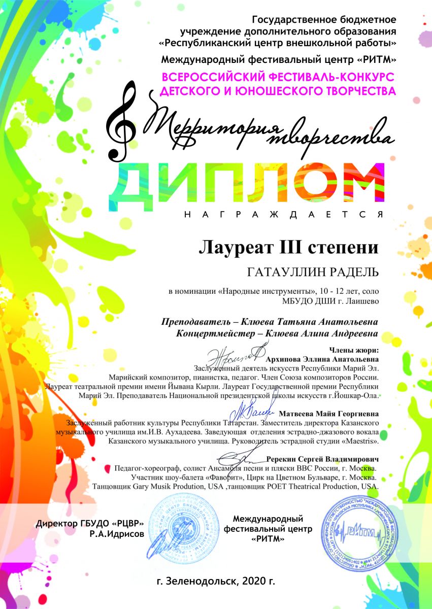 Гатауллин Радель Лауреат III степени "Территория творчества"