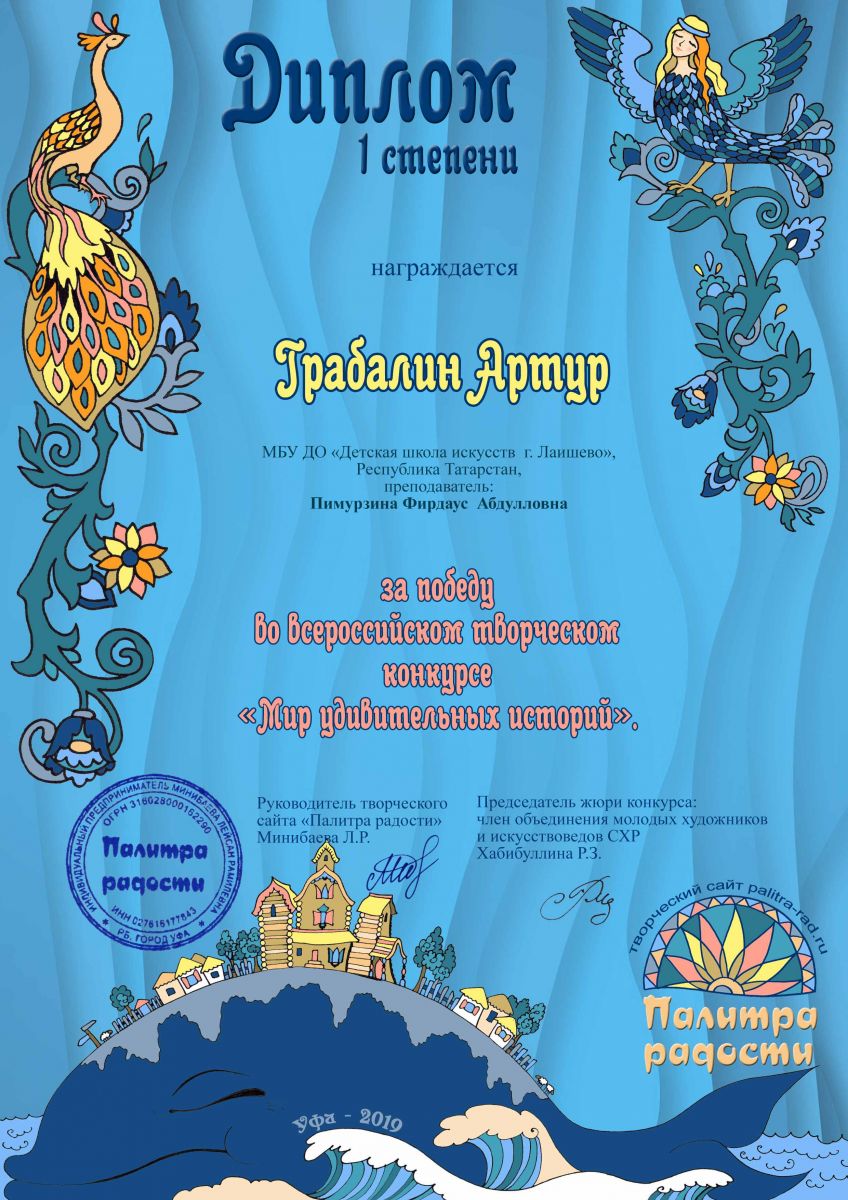 Грабалин Артур_Диплом 1 степени "Мир удивительных историй"