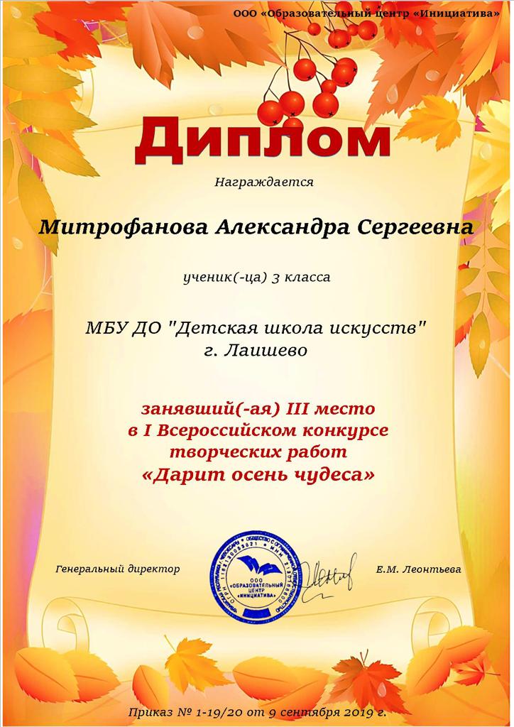 Митрофанова Александра 3 место I Всероссийский конкурс