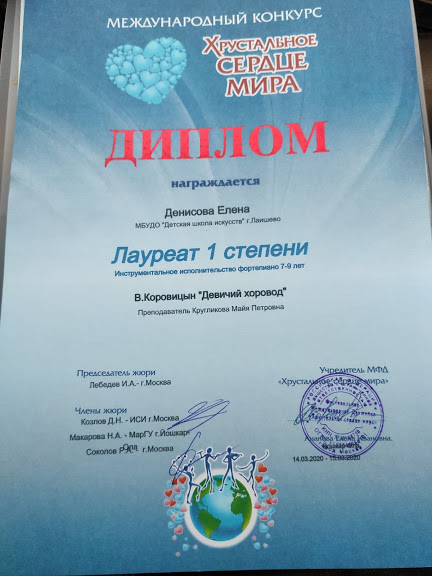 Денисова Елена Лауреат 1 степени Хрустальное сердце мира.jpg
