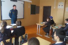 Государственный инспектор Лаишевского участка ФКУ Центра ГИМС МЧС России по РТ Демьянов Р.Ю. провел беседу с учащимися школы по теме: "Меры безопасного поведения на воде в летний период"