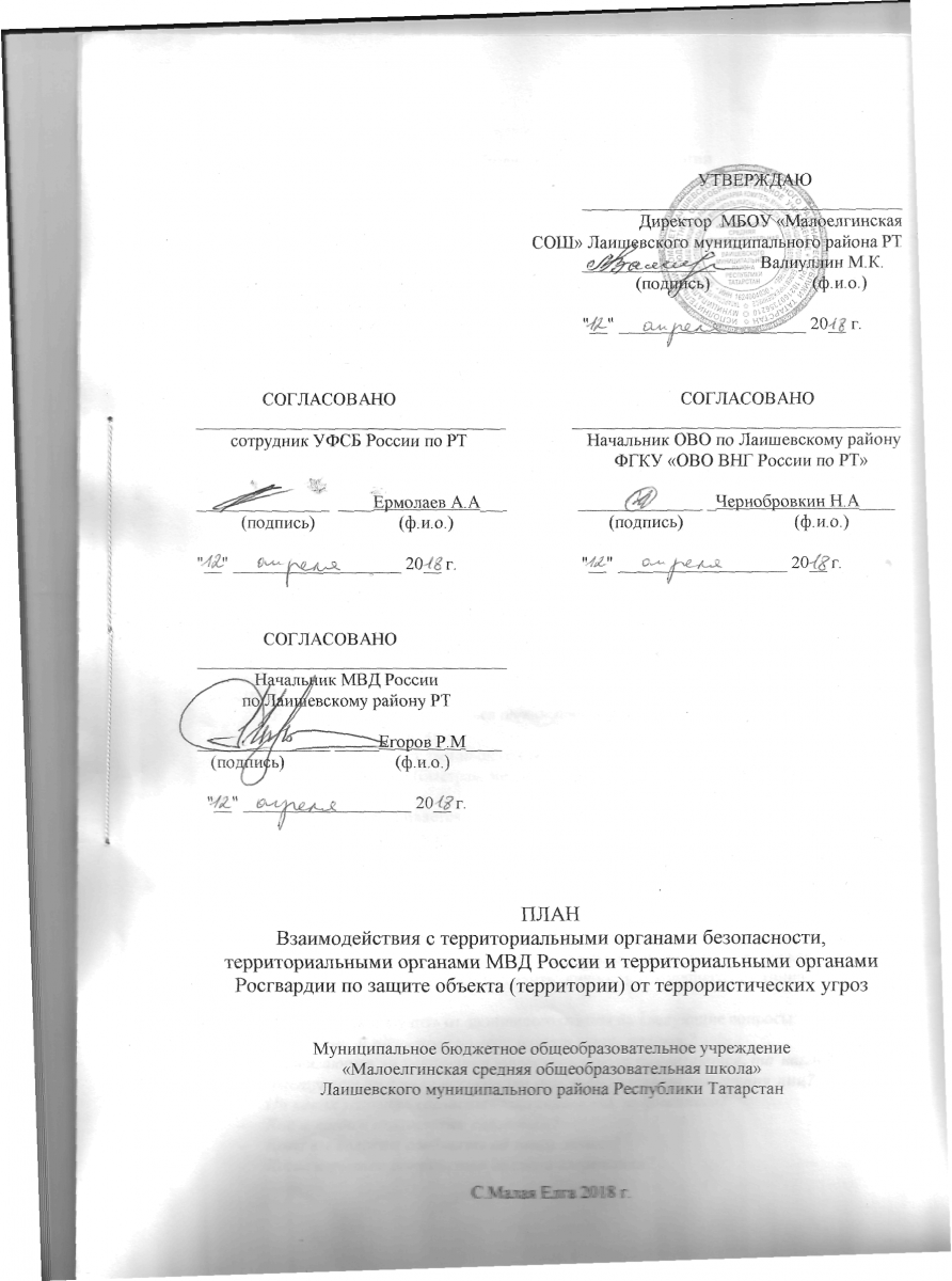 План взаимодействия с территориальными органами безапостности, территориальными органами МВД России и территориальными органами Росгвардии по защите объекта ( территории) от террористических угроз