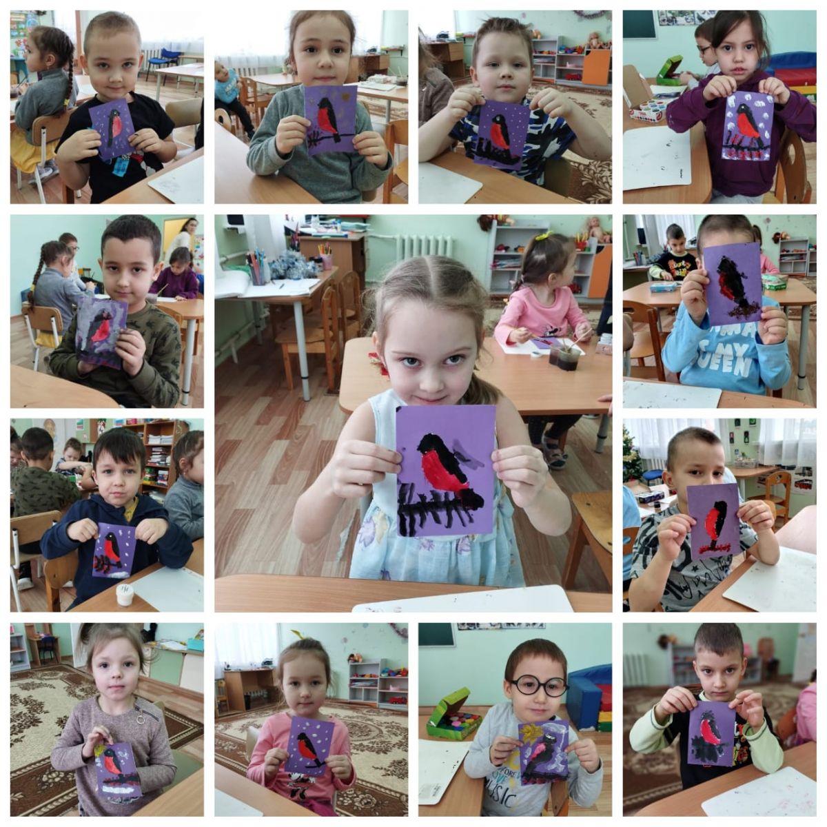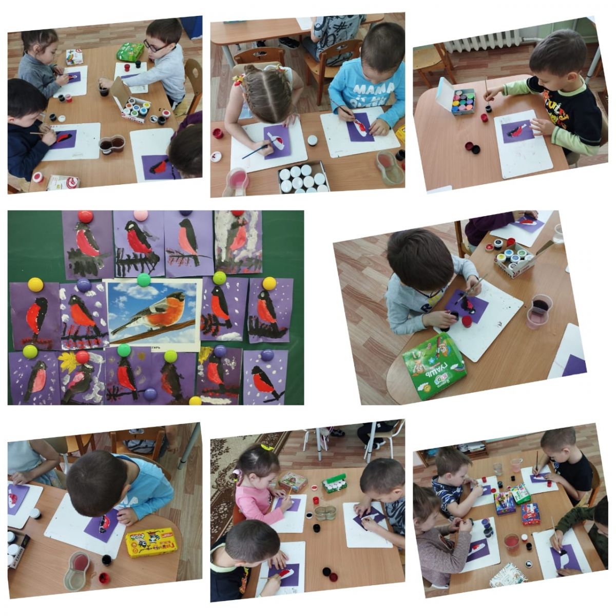 Дети старшей группы нарисовали красногрудых снегирей и заготовили корм для птиц. -
