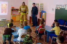 На мероприятие были приглашены сотрудники МЧС, которые рассказали воспитанникам, что огонь – одно из самых больших чудес природы. Огонь дарит человеку тепло, используется для приготовления пищи. Но если огонь выйдет из-под контроля человека, то превращается в страшное бедствие-пожар, который несет разрушение, горе, боль. Пламя пожара не жалеет никого и ничего. В пламени пожара рушатся стены домов, гибнут люди. А ведь в основном главной причиной пожара являются люди. А также рассказали о профессии пожарного, спец.одежде, мерах безопасности и о правилах поведения при пожаре.