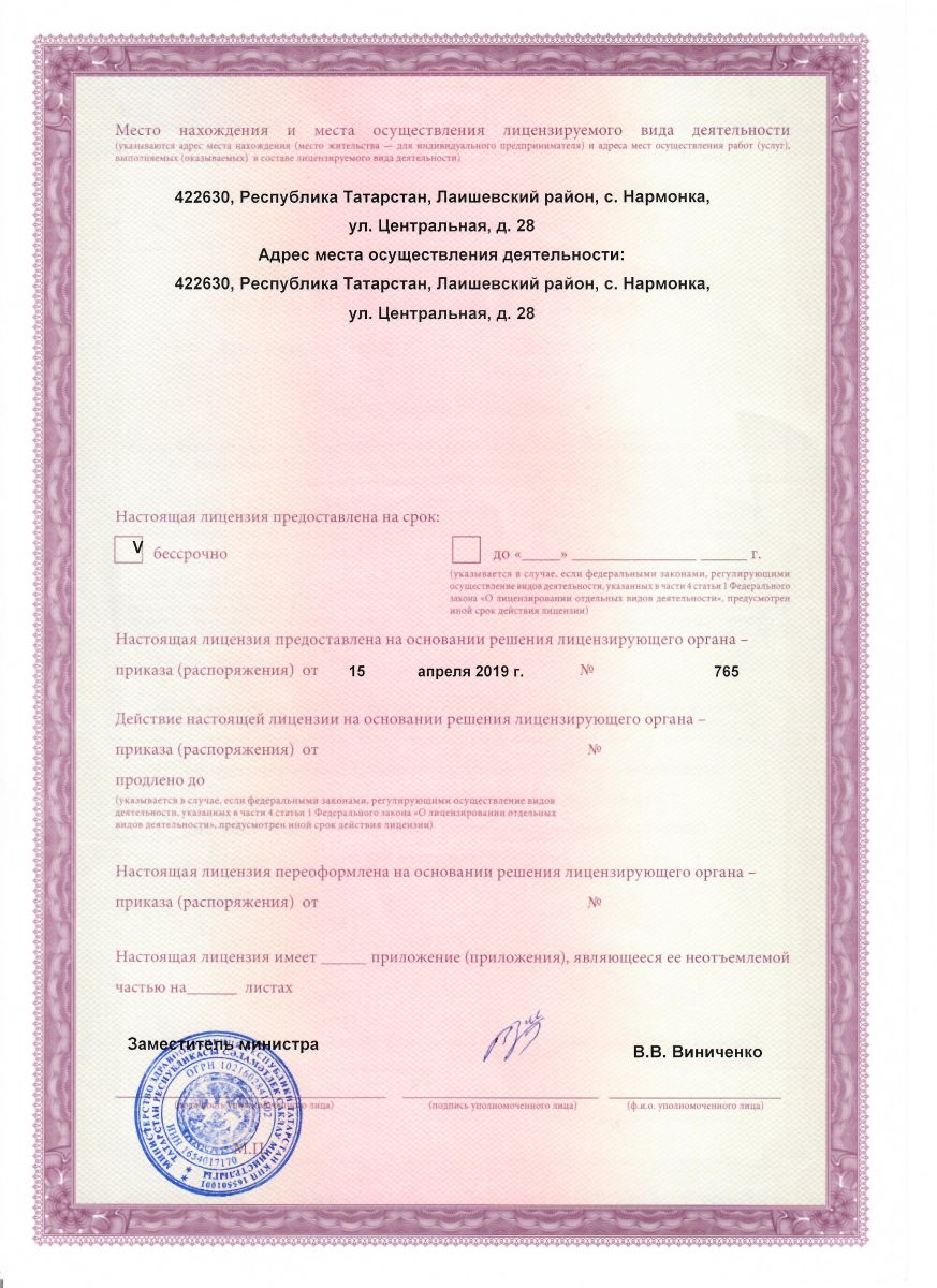 Лицензия на осуществление медицинской деятельности 1 страница, 2 страница