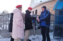 Учащиеся 7 класса отряда Юнармии "Патриоты России" имени Героя Советского Союза М. П. Девятаева поздравили с наступающим праздником Днем защитника Отечества воина-интернационалиста Уткина А. И.