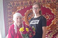 Учащиеся 7 класса поздравили Марфу Наумовну с днем Знаний.