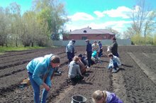 Началась работа на пришкольном участке,ребята и работники школы посадили картофель,лук,овощи для школьной столовой.