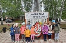 Сегодня наш детский сад принял участие в митинге посвященном Дню памяти и скорби. Дети рассказали стихи о Великой Отечественной Войне и возложили цветы к памятнику.