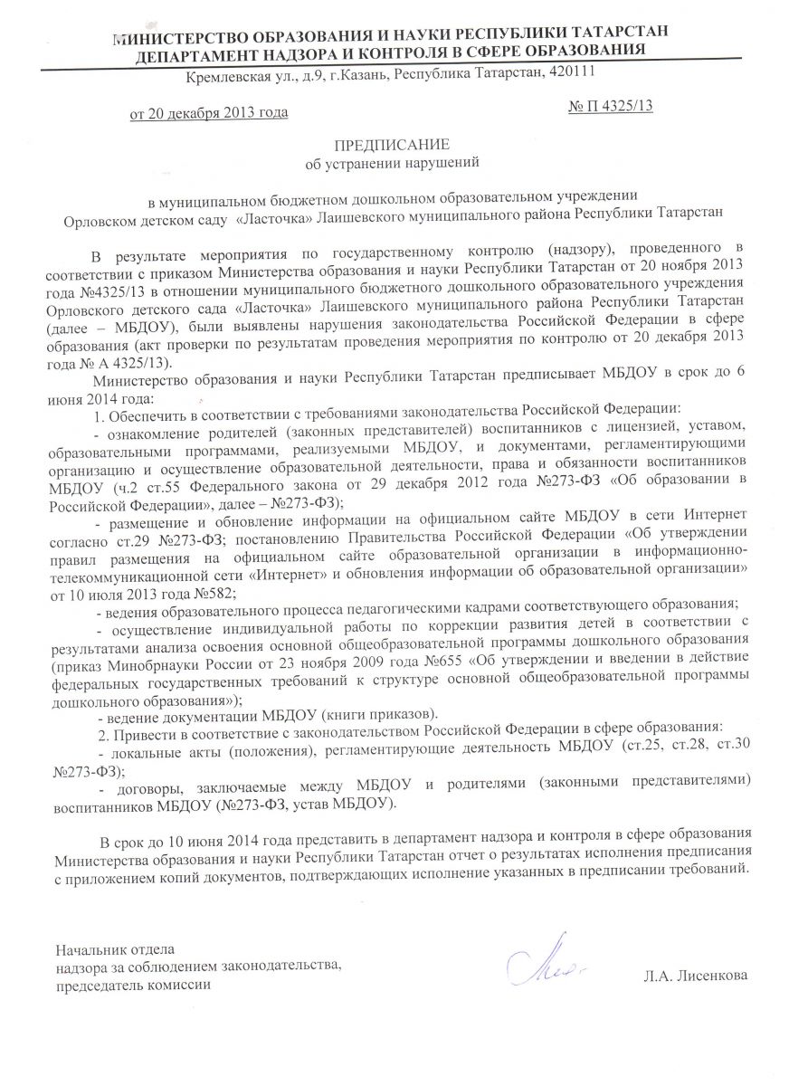 Предписание органов осуществляющих государственный контроль в сфере образования