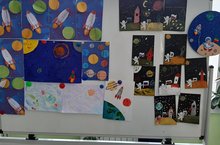 На протяжении двух недель учашиеся начальных классов изготавливали поделки и готовили рисунки ко Дню космонавтики. Работы получились яркими, красивыми. В фое школы была оформлена выставка "Поехали!".