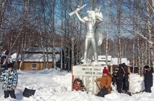 Ученики 8-9 классов МБОУ Орловской ООШ провели очистку памятника воинам ВОв от снега.