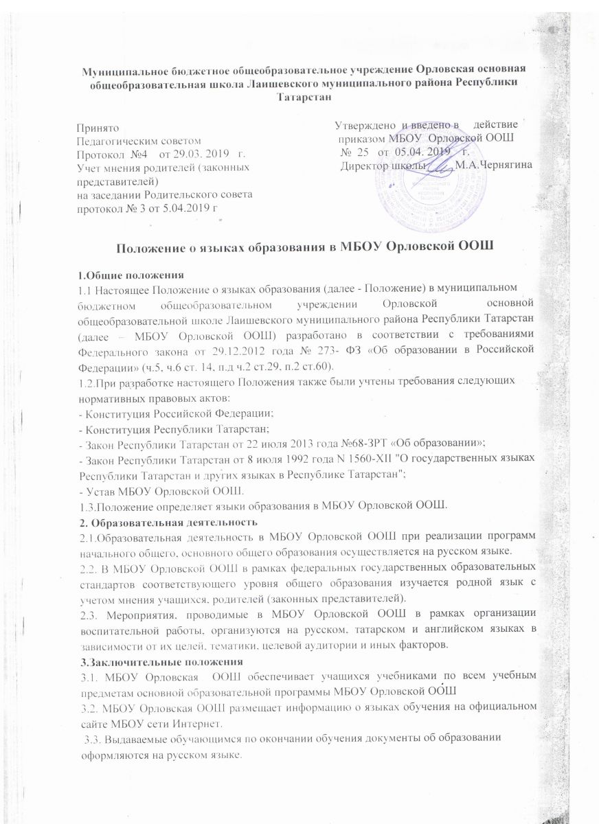 Муниципальное бюджетное общеобразовательное учреждение Орловская основная общеобразовательная школа Лаишевского муниципального района Республики ТатарстанТатарстан Республикасы Лаеш муниципаль районы Муниципаль бюджет гомуми белем учреждениесе Орел төп гомуми белем мәктәбе/