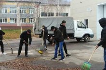 На субботник по благоустройству территории техникума вышли все группы вместе с классными руководителями.
