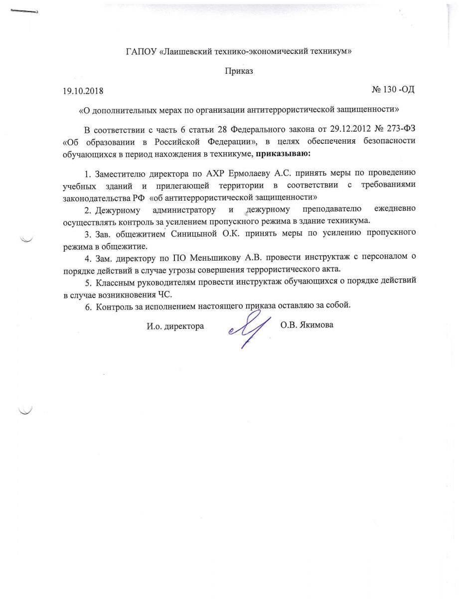 Приказ о дополнительных мерах по организации антитеррористической защищенности