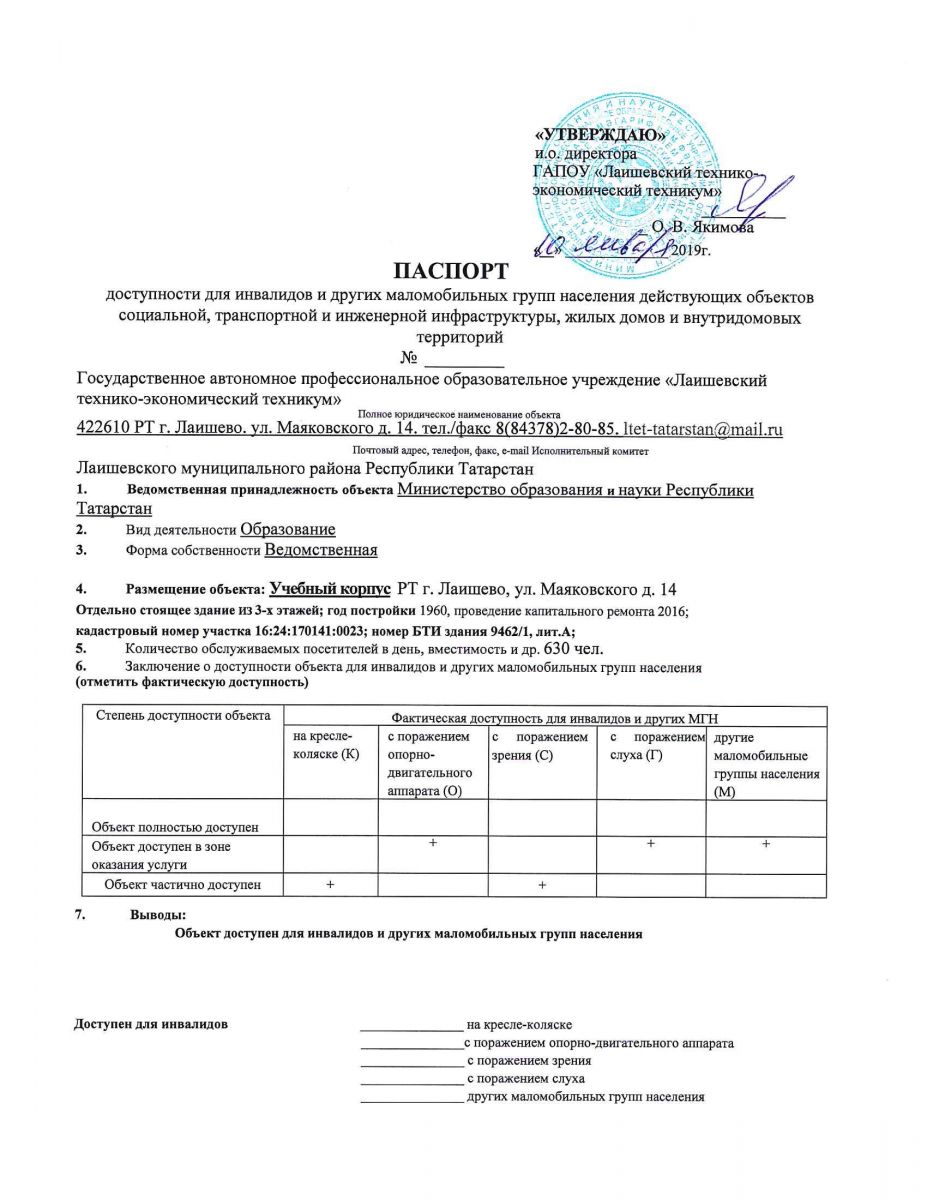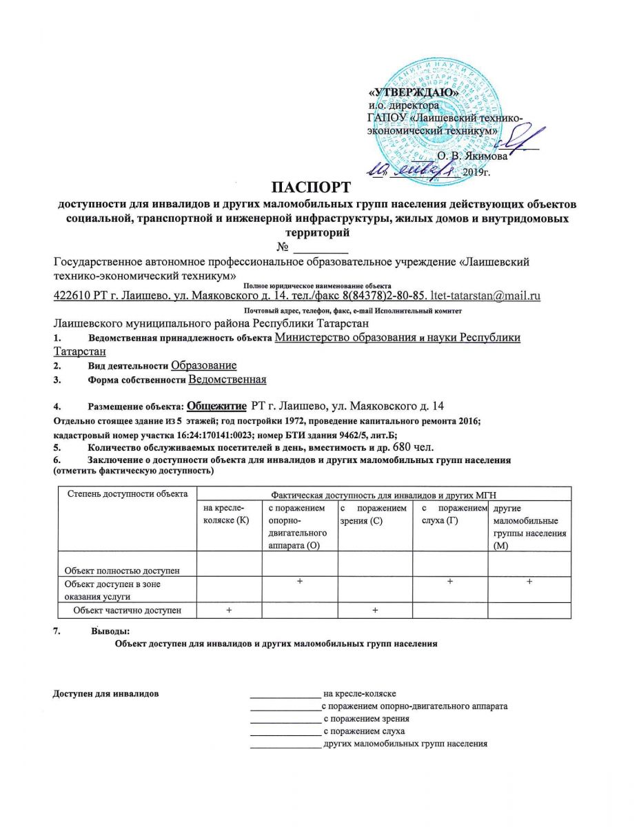Паспорт (паспорт доступности) общежития