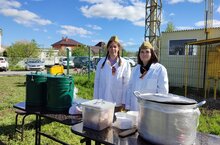 Жители села и гости выстроились в очереди, чтобы попробовать гречу на полевой кухне.Наши воспитатели Мингарипова Айзиля Зуфаровна и Яруллина Ильсия Хамитовна были ответственными за раздачу вкусной гречневой кашей на полевой кухне. -