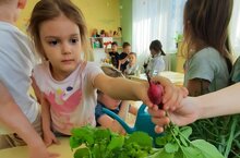 Весна - это время, когда всё растёт и цветёт. Время, когда можно смело сажать и выращивать растения. Больше солнца, больше света и больше тепла. Это то, что необходимо для растений. И чтобы дети имели представление о том, что необходимо для растений, и обеспечить более глубокие знания ребят о росте растений они получили возможность хорошо рассмотреть, понаблюдать за ростом растений, начиная с посадки семян, и дальнейшее за ними наблюдение и уход. И начиналось всё это, когда был ещё снег. День за днём внимательно наблюдая и ухаживая за растениями, дети получали огромную радость от увиденного первого росточка и первых соцветий. То, что посажено своими руками вызывает восторг и бережное отношение к своему творению. Приобщение детей к работе по выращиванию вместе со взрослым овощей на окне и пересадка в парники, развивает целеустремленность, наблюдательность, воспитывает интерес к миру растений и вообще ко всему живому. Старания детей не прошли даром. Вот что у нас получилось! На окне в детском саду на окне зазеленел огород! -