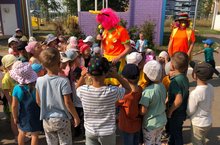 Ребята, затаив дыхание ожидали начала представления. На фоне красочных декораций один за другим на сцене появлялись всем знакомые и любимые герои. Яркие костюмы, красивая веселая музыка и интересные истории зачаровали наших детей. Они внимательно слушали и следили за действиями спектакля, вместе с персонажами радовались, огорчались и веселились.Дети очень быстро включились в спектакль, отвечали на вопросы героев, выполняли их поручения, давали советы, предупреждали об опасности и оказывали помощь героям спектакля.Необычность зрелища захватывает их и переносит в сказочный увлекательный мир, доставляя им огромную радость. В конце спектакля артисты предложили детям станцевать под веселую, зажигательную музыку.