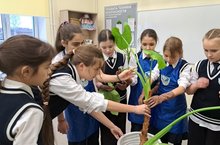 Ученицы 5г класса на уроке технологии не только узнали разницу между пересадкой и перевалкой растений, но и выполнили практическую работу. Теперь в просторных кашпо, которые украшают наш лицей, цветам будет очень уютно.