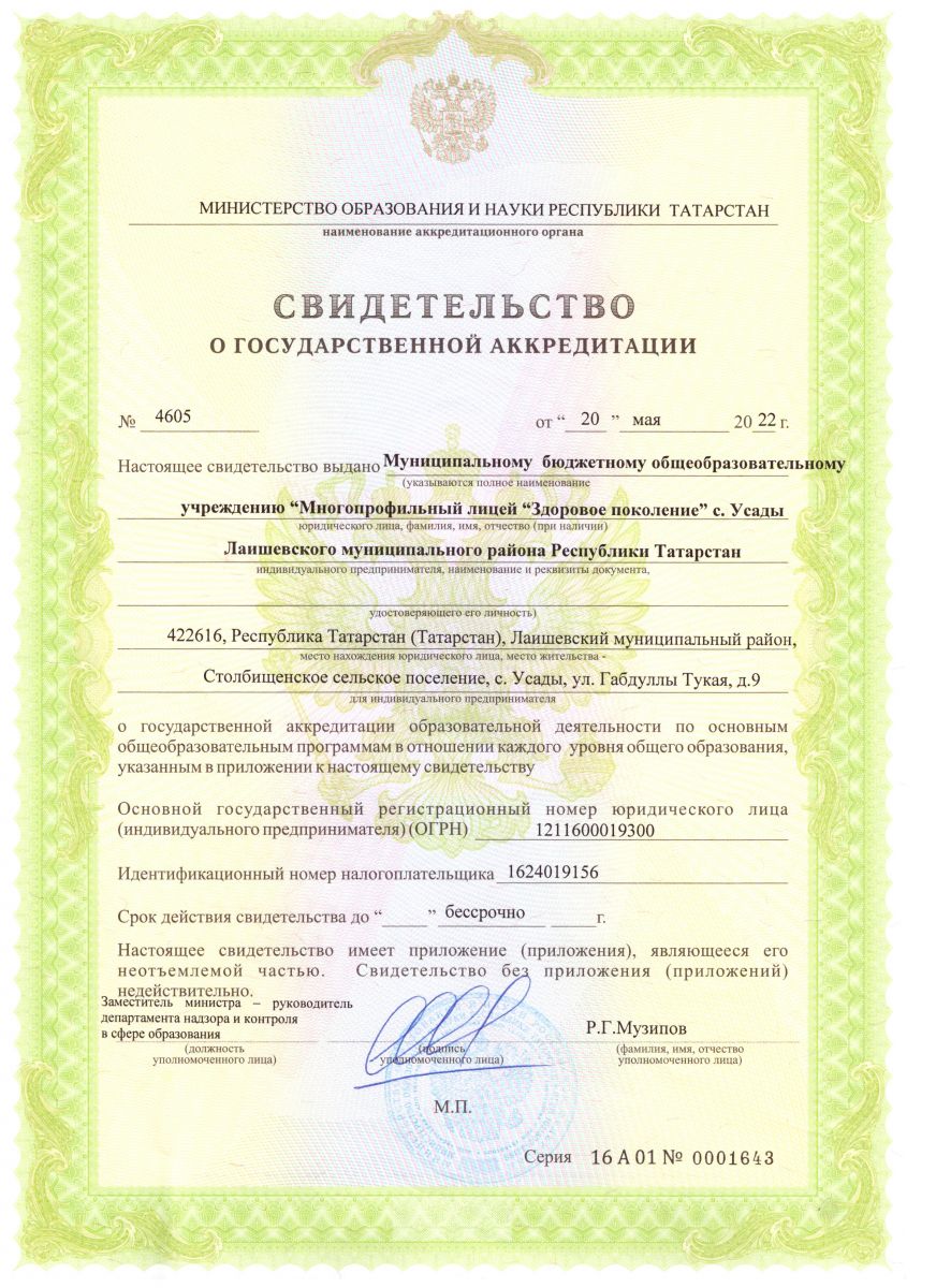 Муниципальное бюджетное общеобразовательное учреждение «Многопрофильный лицей «Здоровое поколение» с. Усады Лаишевского муниципального района Республики Татарстан