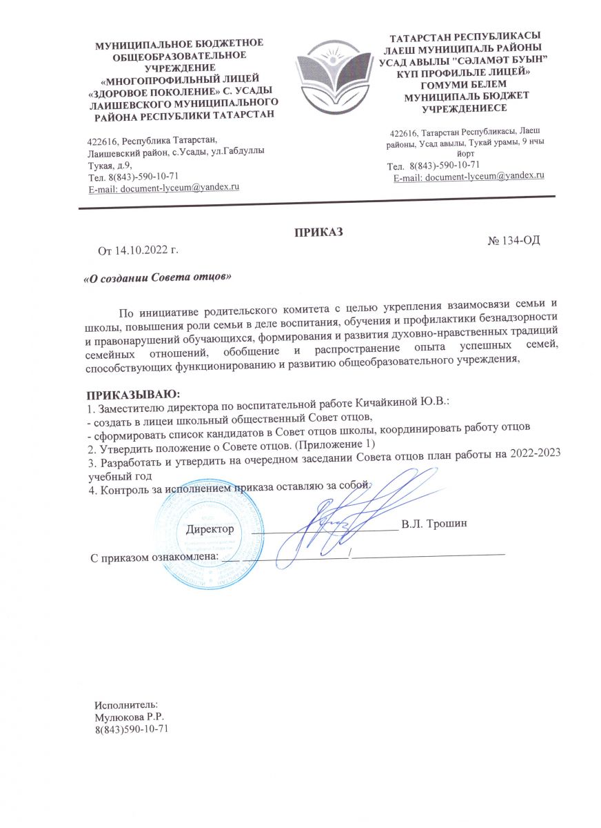 Муниципальное бюджетное общеобразовательное учреждение «Многопрофильный лицей «Здоровое поколение» с. Усады Лаишевского муниципального района Республики Татарстан