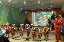 Сегодня в нашем детском саду стартовали новогодние утренники. К детям младших групп пришел в гости тигр. И дети рассказали ему что же такое Новый год. А в завершении праздника Дед Мороз вручил детям подарки.