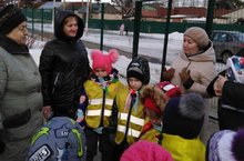 Отряд ЮИД "Дружные ребята" совместно с педагогами ДОУ и специалистом ГБУ "Безопасность дорожного движения" Гульшат Айратовной Зайнуллиной провели акции "Стань заметнее в темноте". Ребята раздавали световозвращяющие фликеры детям и родителям.