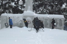 К 70-летию Победы. Ученики нашей школы приняли участие в субботнике по очистки от снега памятника погибшим войнам в годы Великой Отечественной воины 13.01.2015