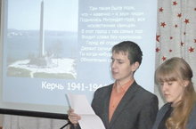 В Песчано-Ковалинской школе продолжается марафон памятных дат, посвященный 70-летию Победы в Великой Отечественной войне. Сегодня ученики 11 класса рассказали о битве за Керченский пролив, за Крым. 13.12.2014