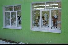 Полюбуйтесь творениями Деда Мороза, который в качестве подарка украсил наши окна.