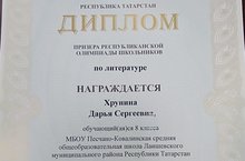 Поздравляем Хрунину Дарью! Призер Республиканской олимпиады школьников по литературе 02.02.2021