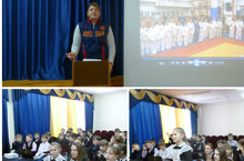 В рамках предметной недели физической культуры и ОБЖ, в школе состоялось мероприятие «Спорт в жизни человека». Ученикам 5-11 классов был показан фильм «Дзюдо. Искусство жить». Фильм основан на реальных рассказах людей, чьи судьбы и характеры формировались под влиянием философии дзюдо. Борцы дзюдо в прошлом или настоящем, любители или профессионалы, чемпионы и новички… У каждого из них в жизни произошла беда, но своим примером доказали, что дзюдо не просто спорт – это искусство жить.
