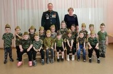 Встреча воспитанников детского сада "Акварелька" с Дмитрием Кузичкиным. Уроженец села Высокая Гора. Он кадровый военный в звании капитан. Он был одним из первых, кто перешел границу Украины в феврале. Там совершил подвиг, за который был награжден медалью «Зв отвагу».