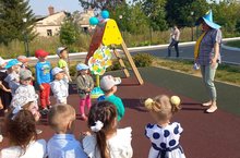 В нашем детском саду первый день нового учебного года прошёл, как всегда, ярко и эмоционально. На праздник к детям пришла Незнайка, которая загадывала детям загадки, играла с ними в игры, дети пели и рассказывали стихи. С большим интересом дети участвовали в играх и соревнованиях Незнайки.