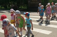 Воспитанники старшего дошкольного возраста совместили экскурсию в музей Боевой славы с закреплением правил дорожного движения. Дети не только учились правильно переходить дорогу по пешеходному переходу, но и запоминали дорожные знаки, которые встретились им по пути.
