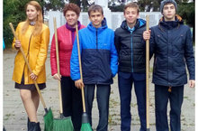 Волонтерский отряд Песчано-Ковалинской школы "Пламя" принял участие в субботнике по уборке территории "Аллеи славы" 07.10.2016