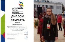 Ученица 9 класса МБОУ "СОШ пос. им. 25 Октября" Евсеева Дарья награждена дипломом лауреата Открытого регионального чемпионата "Молодые профессионалы WorldSkills Russia Республики Татарстан 2016 года", компетенция: Я - мастер. 23.06.2016