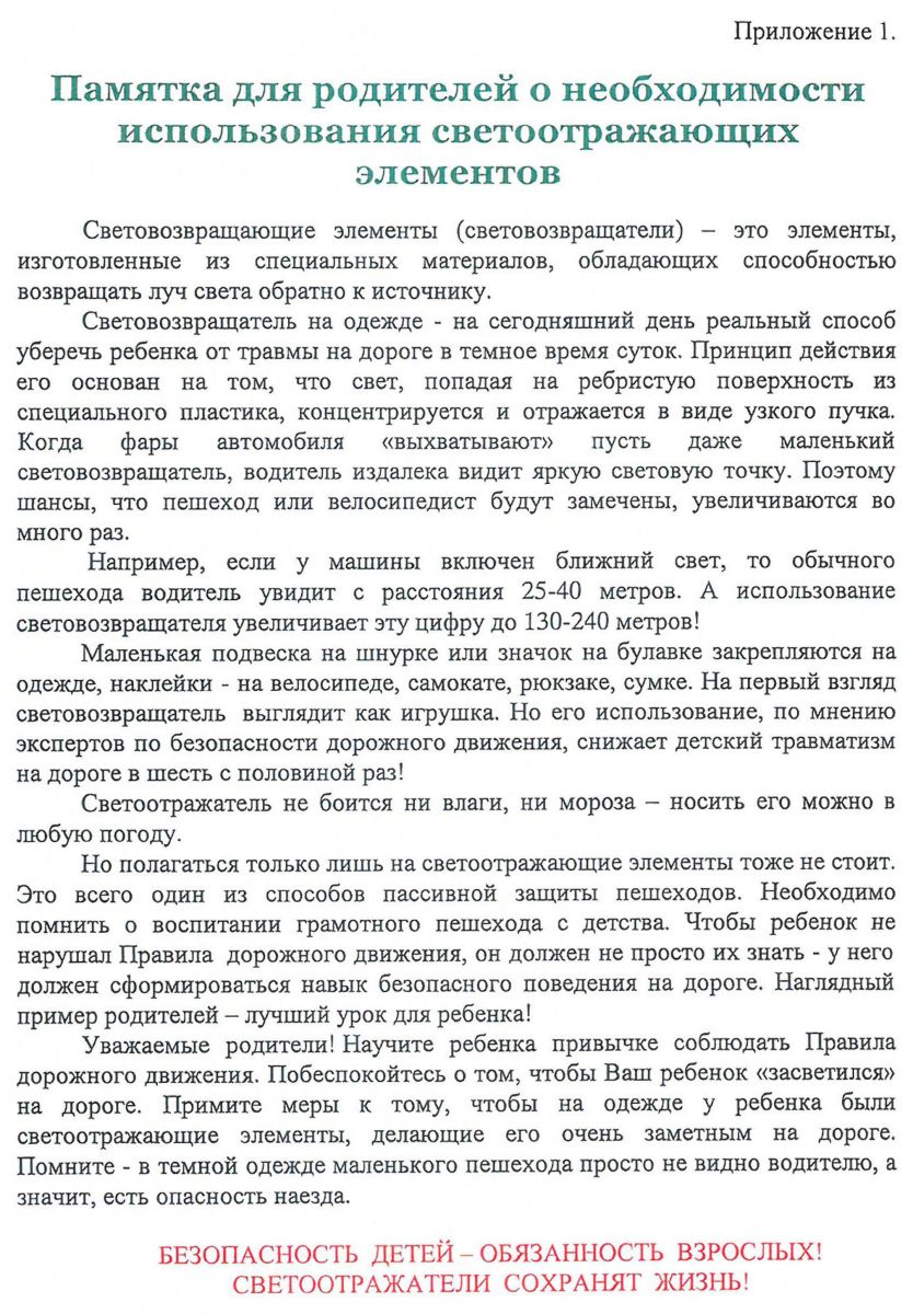 Памятка родителям о необходимости использования светоотражающих элементов