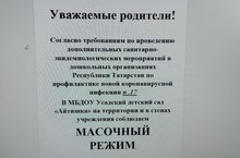 Согласно с требованиям по проведению дополнительных санитарно-эпидемиологических мероприятий в ДОУ РТ по профилактике новой коронавирусной инфекции п.17 в МБДОУ Усадский детский сад "АЙТИШКА" на территории и в стенах учреждения соблюдаем МАСОЧНЫЙ РЕЖИМ!!!
