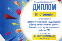 Детский телеканал "Будильник" Центра внешкольной работы Лаишевского муниципального района занял III место в VIII Всероссийском фестивале детских и молодежных СМИ.