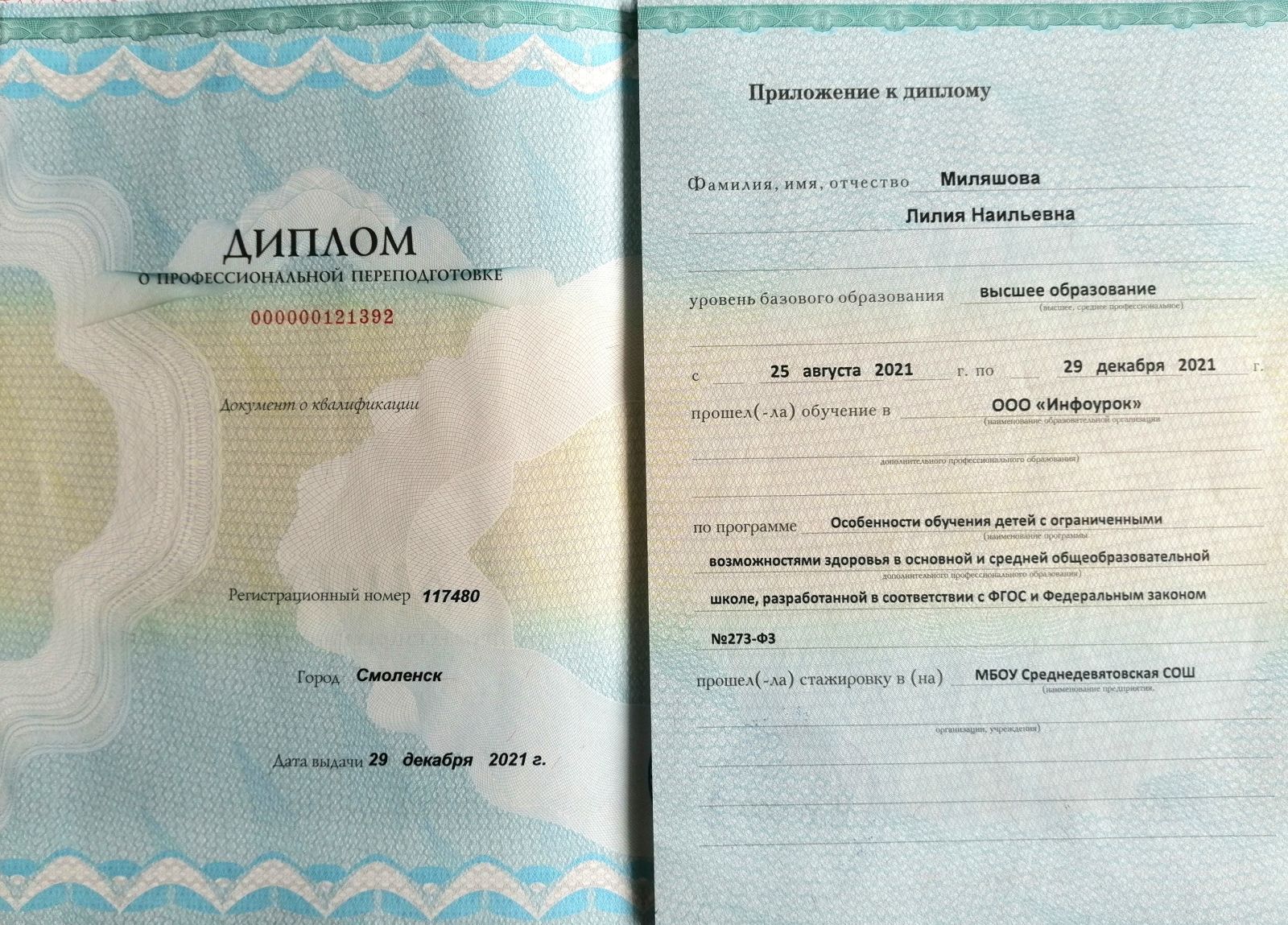 Доля педагогических работников в ОДО, имеющих специальное образование (диплом о высшем профессиональном образовании или диплом о среднем профессиональном образовании, диплом о профессиональной переподготовке), позволяющее осуществлять образовательную деятельность с обучающимися с ОВЗ, детьми-инвалидами