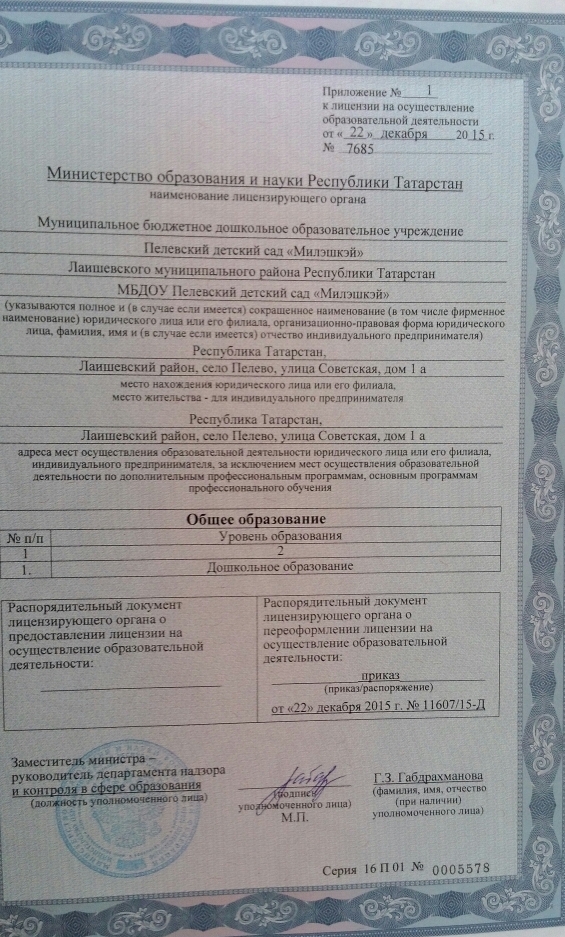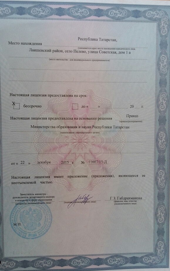 1. Лицензия , приложение к лицензии, приложение.