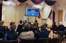 Также учащиеся прослушали видеообращение Министра образования Хадиуллина И.Г. И Министра по делам молодежи Сулейманова Т.Д. О выборах на пост президента в команде «Движение Первых». -