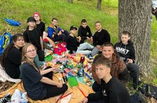 Ну, какой же поход без привала?! Расположившись, дружно накрыли импровизированный стол. Подкрепились на свежем воздухе. А после обеда (помните?) «по закону Архимеда полагается поспать». Но только не нашим туристам.